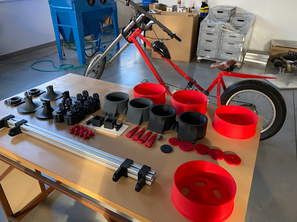 Súčiastky vytlačené pomocou technológie 3D tlače u nás na škole, ktoré použijeme pre vytvorenie prvého prototypu vozidla.